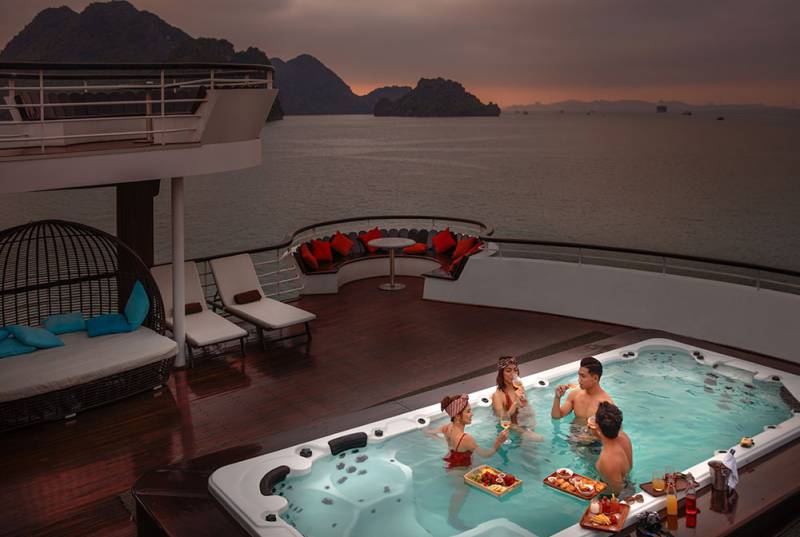 Besides, you can also experience delicious and attractive dishes at the luxury restaurant and professional massage services at the Spa right on the cruise. The spacious sundeck area with open space and outdoor bar will also provide memorable relaxing moments.